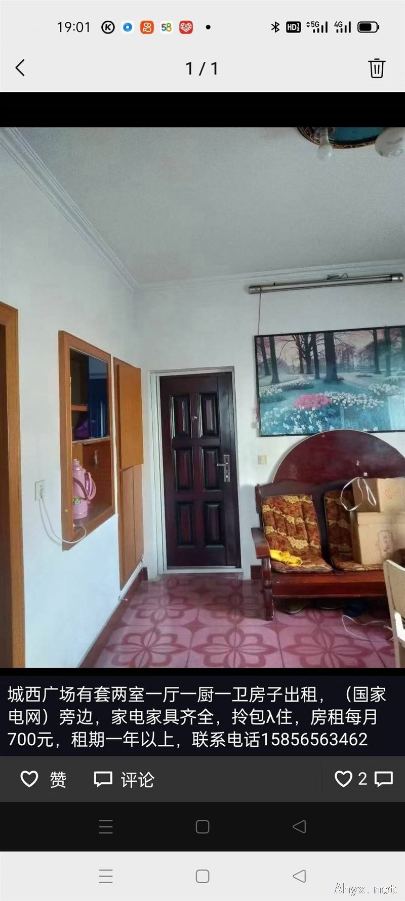 城西广场旁边,有一套两室一厅一厨一卫出租,交通方便